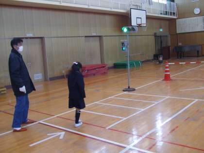 正しい歩行の仕方として、信号のルールや安全な道路の歩き方などを実際に道を歩くようにして、丁寧に教えていただきました。