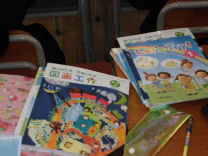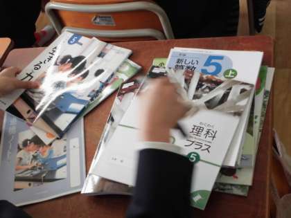 山のように積まれているのは、教科書です。