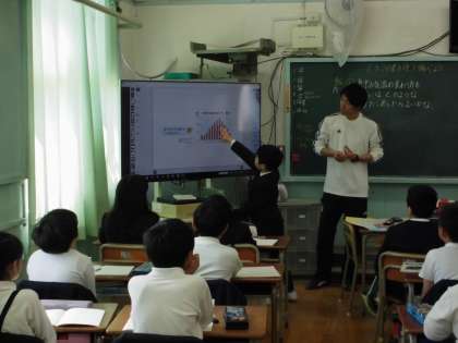 今4年生では、折れ線グラフの学習をしています。3年で学習した棒グラフの学習を生かし、折れ線グラフの良さや数値の読み取り方を学習しました。