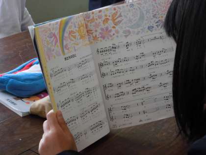 教科書の最初に載っている「翼をください」を歌い、最後には