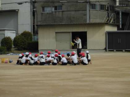 体育の学習で初めて、リレーをしました。初めてのバトンパスに苦戦しながらも楽しく走りました。