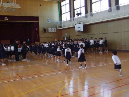 1年生たちは緊張しながらも、2〜6年生に迎えられました。