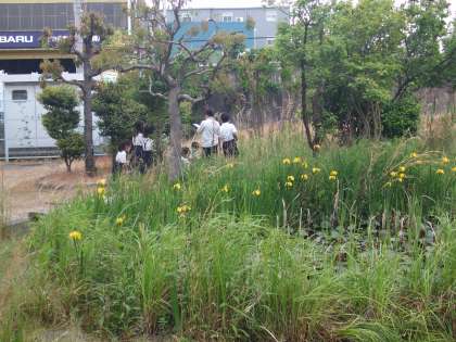 ハスの花がさいていたり、キンカンにきづいた児童もいました