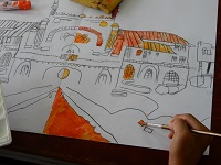 右側に暖色系の色(赤、黄色、オレンジなど)