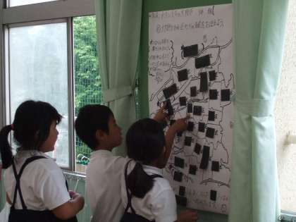 場所と区をリンクさせて覚えていきます。教室には、模造紙に黒い画用紙を貼って区を隠し、答えを当てていきます。工夫を凝らしながら、覚えていっています。でも、後は、自宅学習の積み重ねしかありませんね。宿題や朝学習を元に、自分のために頑張って覚えていこうね。繰り返し学習が身につくのです。お直しも大切です。