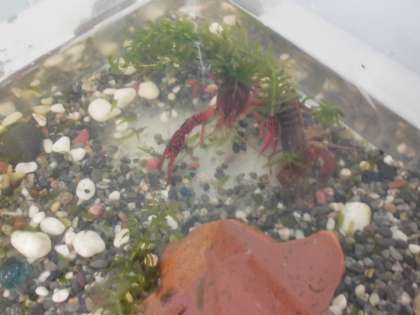 池から釣ってきたときは体の色が濃い緑色だったのが、赤色ぽくなってきています。