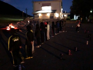 「人間っていいな」を林間の行事に替えて、歌って踊っています。