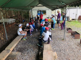 昨日頑張ってこすった焼き板に林間の思い出を描いています。