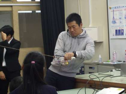 最初に見せて頂いたのは、「空気の力」を使って動く、『横向きロケット』です。