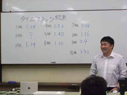 どの班のカッコイイ車が、一番速く走るか競争したね。