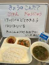 今日は、「けいにくのどてやきふう」「はりはりじる」「れんこんのフライおおさかソー...