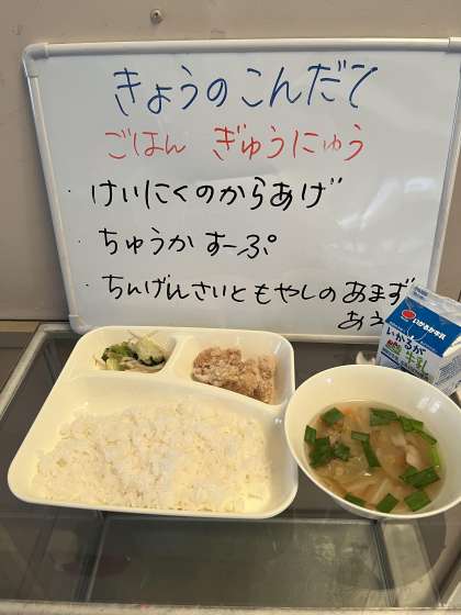 子どもたちの大好きなメニュー、鶏肉のからあげ。