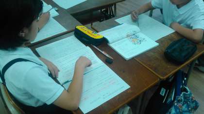 写真は、授業研究会に向けて5年生で行っているプレ授業の様子です。