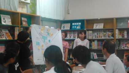 6月13日(木)公開授業のあと、図書室でグループ討議と発表を行いました。今年は、「もしも・・・だったら」という課題を子どもたちと一緒に考えて、めあてに迫ることにしています。