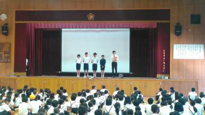 写真は、先週末に佃中学校の2年生が本校で行った職業体験の様子です。全員が本校の卒業生のため、佃西小学校8年生ですと自己紹介していました。