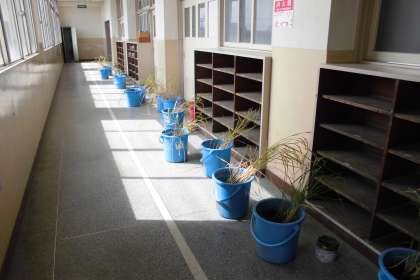 5年生が5月頃から栽培している稲が育ち、米を収穫できるようになりました。