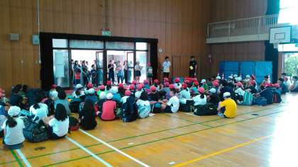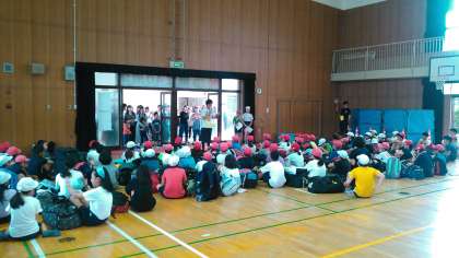 出発式の様子です。保護者の皆様も多数お見送りに来ていただきました。