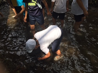 魚つかみ開始です!