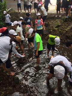 魚つかみ進んでます。はじめての感触に感動の声が次々にあがってます。