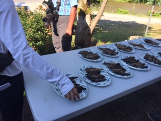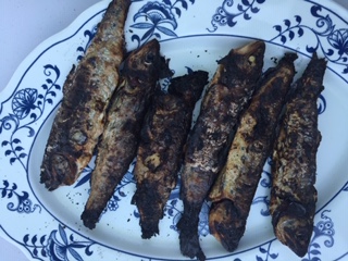 自分たちで掴んだヤマメを焼いていただきました。