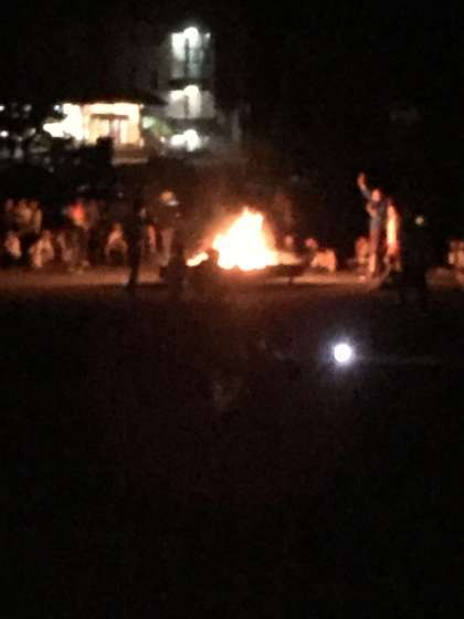 キャンプファイヤーが始まりました。皆んなで協力して盛り上げています!