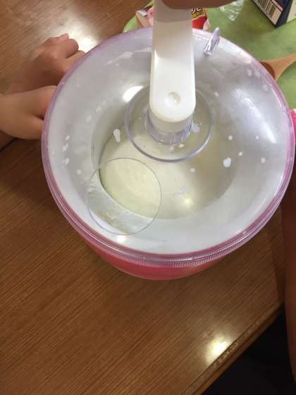 材料と空気が混ざり合って、ふわふわの状態になってきました。ワクワク!