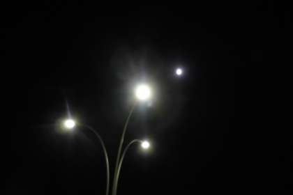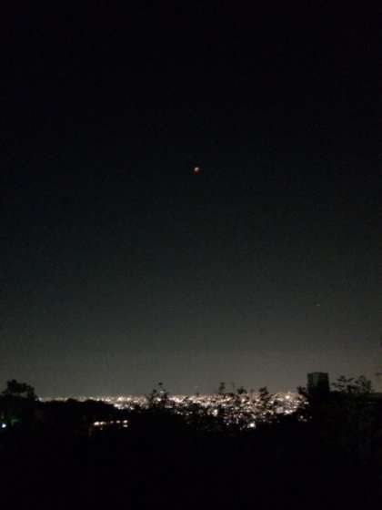 10月8日(水)の夜に皆既月食が見られました。左は10月7日の志摩マリンランド、中央と右端は8日に西宮市剣谷橋から撮影したものです。