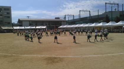 運動会の終了時刻が、児童数の増加で年々遅くなっています。児童の下校時刻も遅くなり心配していましたが、保護者の皆様のご協力で21張もあるテントや入退場門を一斉に片付けることができました。ありがとうございました。