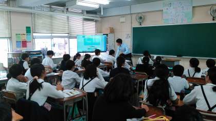 10月28日(月)英語の授業の様子です。オールイングリッシュで授業を進めています。来年度から英語の授業時間数が増加しますが、本校では市教委から講師をお招きし全員でレッスンスタディーをしています。