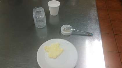 8分間のパン生地の成形が終わって、2次発酵を待つ間にバターをつくりました。一生懸命高濃度のミルクを振って脂肪分を固めています。余分な水分をとり、水で洗ったら塩で味付けです。