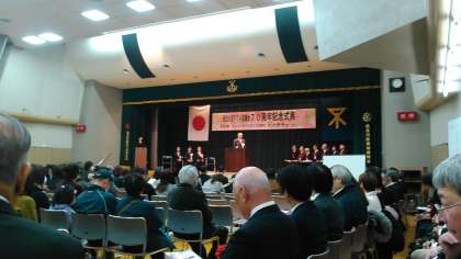 2月17日(月)今朝の朝会では、大繩大会の表彰を行いました。どのチームもスローガンどおり力が尽きるまで跳んでいました。その他に伝えよう命のつながり作文コンクールの入選作品の表彰も行いました。写真は、先日行われた区PTA70周年の記念式典と作文コンクールの表彰の様子です。