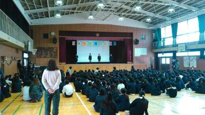 ゲームと校歌斉唱が終わり佃南小の子どもたちとお別れです。また、4月に会いましょう。