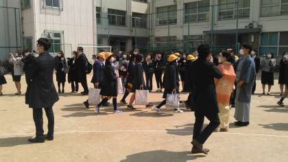 3月23日(月)卒業式を無事に終えることができました。1組2組の順に花道を通って巣立っていきました。