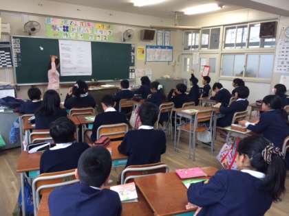 11月17日(月)の下校前に1年生と6年生のフォニックスを参観しました。教育センターや民間の講師の方に指導していただきました。