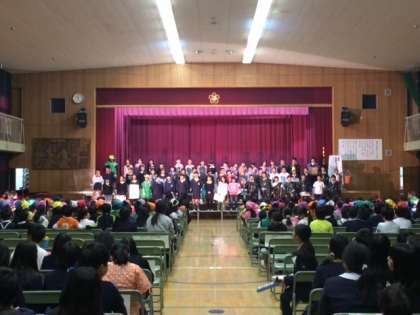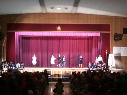 学習発表会のリハーサルの写真です。中学年は、学習した内容を中心にした発表です。