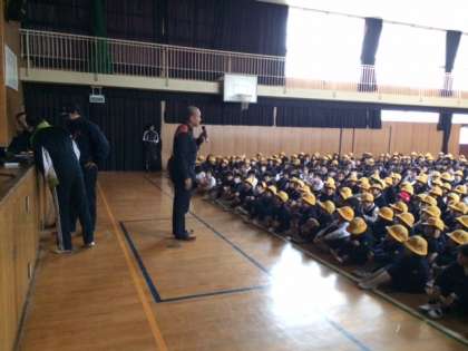 11月25日(火)3時間目に火災のための避難訓練を行いました。子どもたちはハンカチを口にあて、真剣に避難しました。消防署員からの説明とDVDによる防災学習も同時に行い、実際に起こった時も静かに落ち着いて行動することの大切さを学びました。