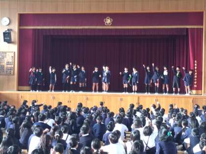 11月27日(木)児童集会で運動委員会の児童や教員が縄跳びを披露してくれました。