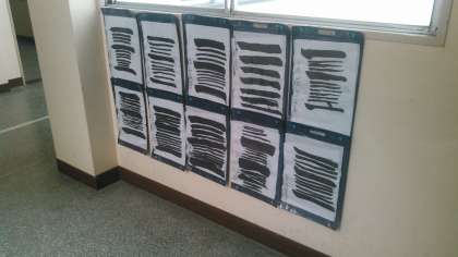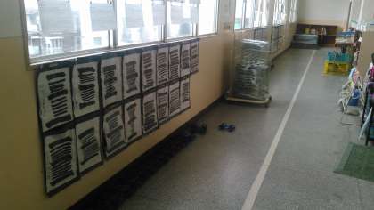 7月21日(火)気温がぐんぐん上昇しています。熱中症が心配ですが、3密ならぬ3とるで対応していきましょう。写真は、学年の掲示板に貼っている周作です。学年の発達段階と履修内容に沿った作品を制作しています。