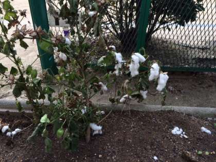 学習園で綿毛を発見しました。綿がこんなふうにできるのかと驚いている子どもたちもいました。大阪の河内木綿は全国的にも有名ですね。
