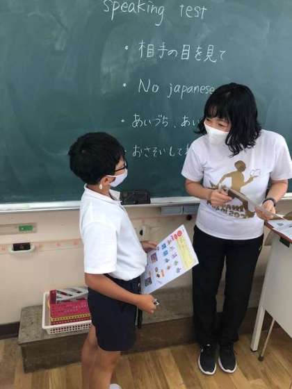 スピーキングテストをしました。日本語を使わず、知っている英単語を使って、英会話をがんばりました。