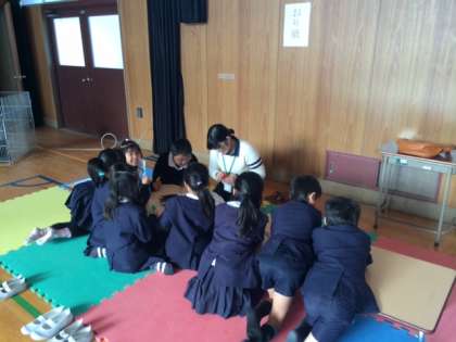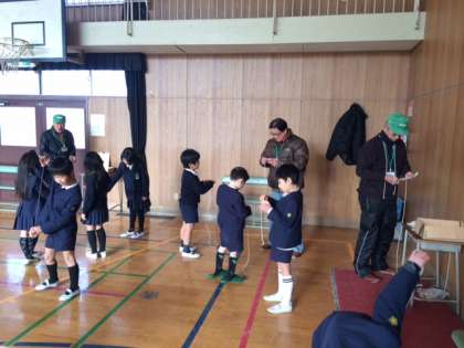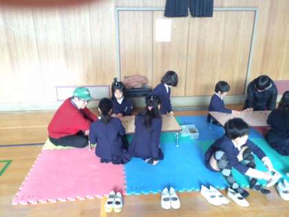 地域の皆様に学校に集まっていただき、昔の遊びを習いました。どの遊びも上手に教えていただきました。