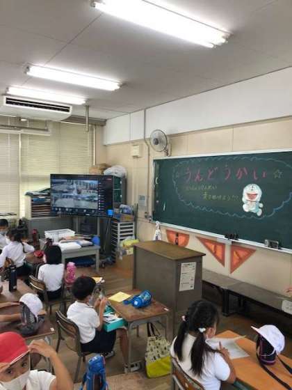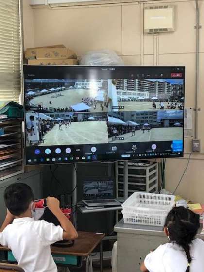 教室で応援中