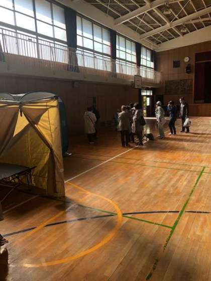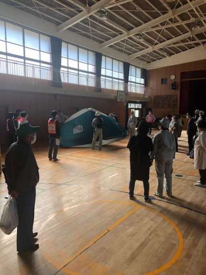 療養スペースの設営訓練や、消毒についての訓練などを行いました。