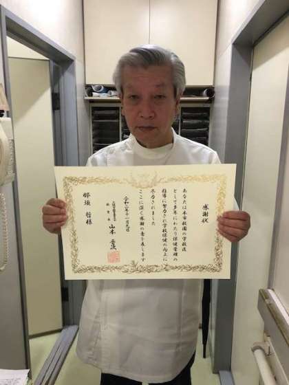 佃南小学校で、長年にわたって学校医として勤務していただいた那須哲様に、大阪市教育委員会より感謝状が贈呈されました。