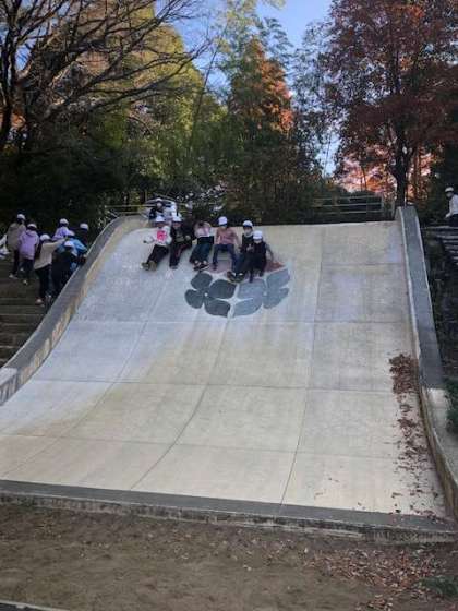 朝食後に時間があったので、近くの「はだしの里」で遊びました。