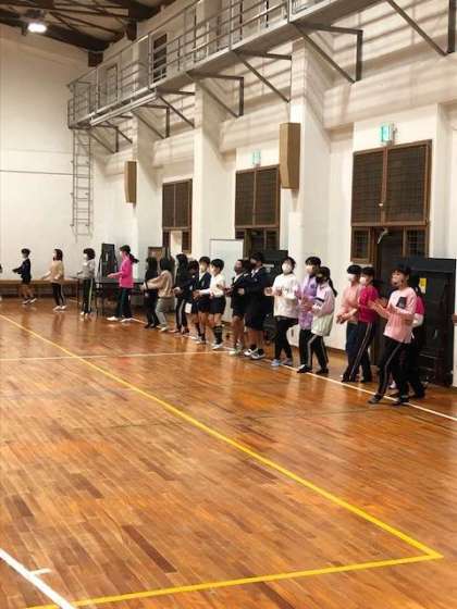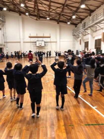 朝のつどいの後、キャンプファイヤーでできなかった「マイムマイム」を踊りました。