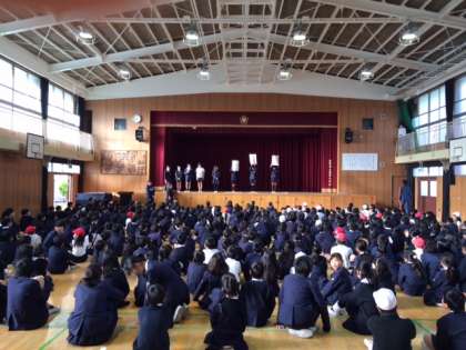 2月19日(土)の児童集会です。先生方にちなんだクイズで、児童も先生も盛り上がっていました。