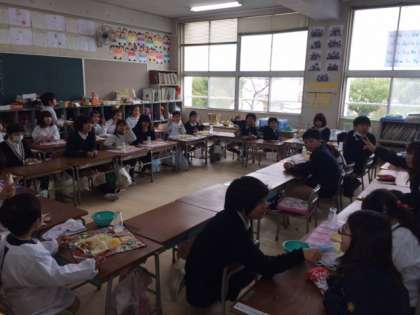2月23日(月)ふれあい給食を行いました。縦割り班で食べる給食はいつもと違った雰囲気で楽しめたと思います。
