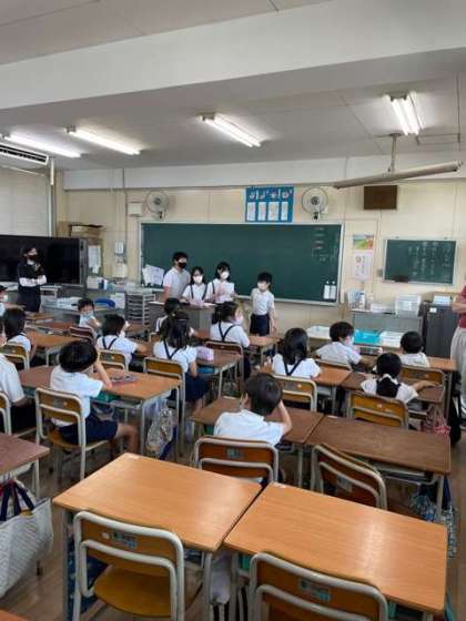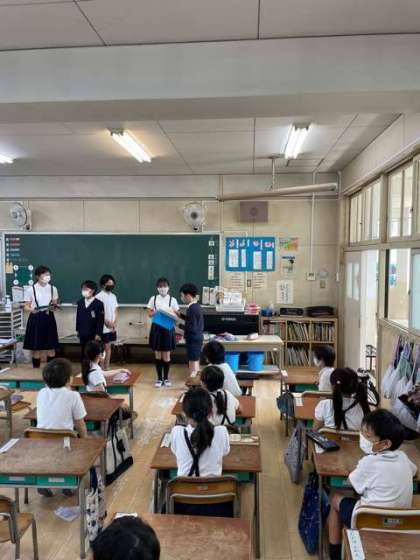 1年生から6年生が、たてわり班の教室に集まり、たてわり班編成をしました。