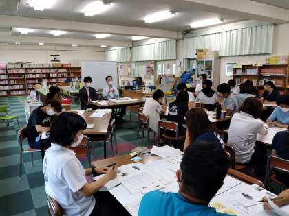 教員がグループに分かれて授業についての改善点等を出し合っていました。最後に大学教授の先生から指導講評をしていただきました。